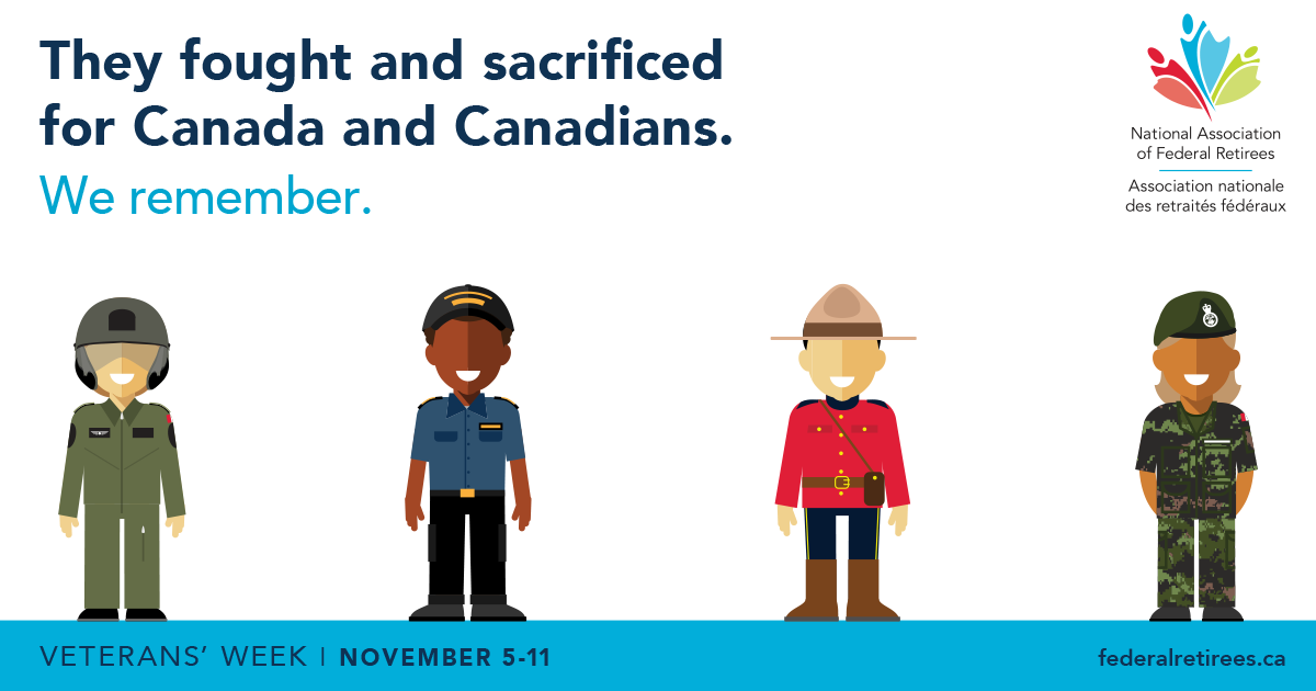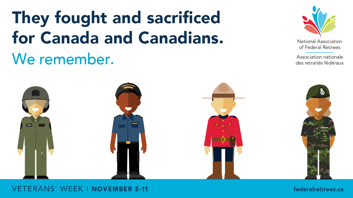 Veteran well-being is one of the Federal Retirees’ four key advocacy priorities. We asked, and will continue to ask, the government to ensure that veterans and their loved ones have the well-being, care and benefits they deserve. In particular, we are seeking: